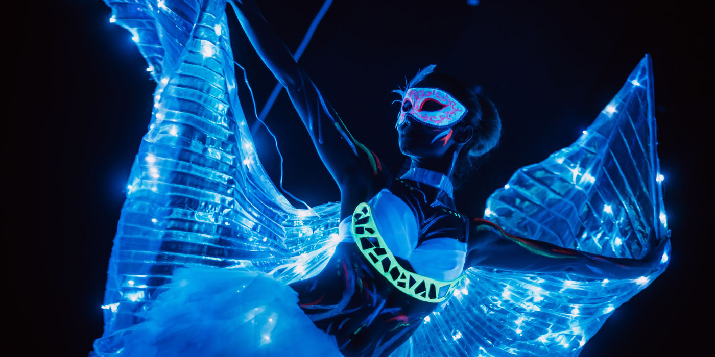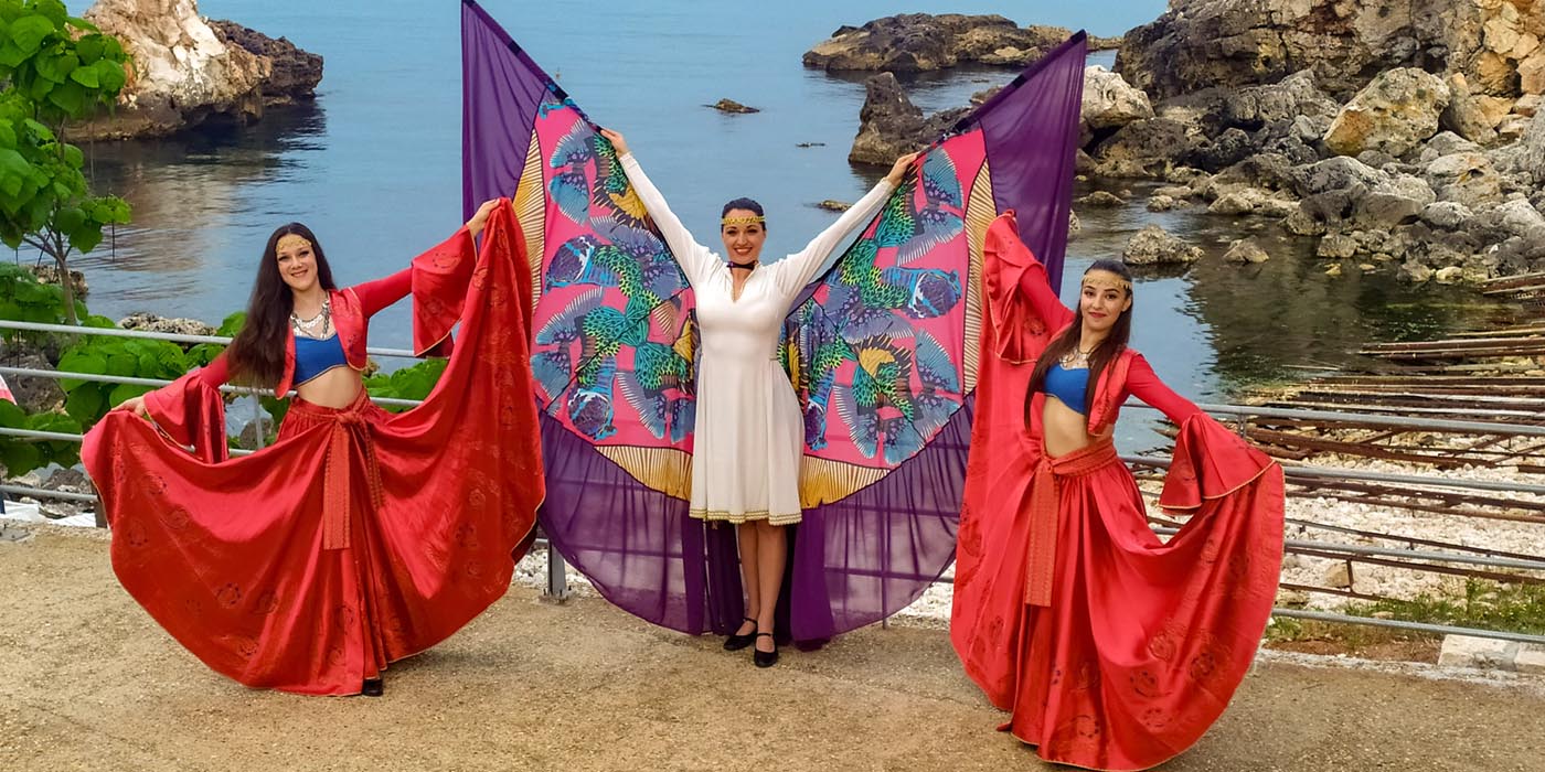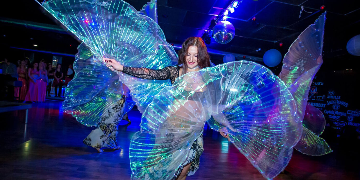 Танци с аксесоари – крила на Изида, светещи крила, воали, ветрила – феерия от цветове и форми.